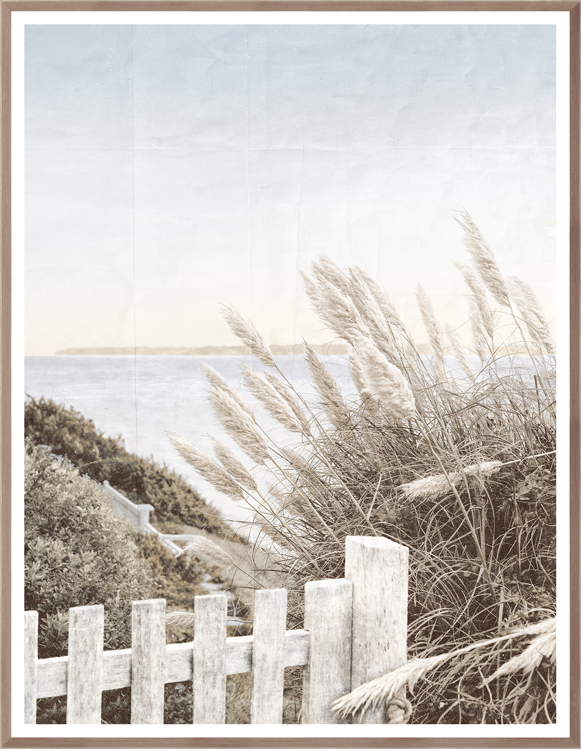 These images capture a quiet coastal scene using soft, faded tones and gentle lighting to create a calm and nostalgic atmosphere. The muted colours and slightly blurred textures give the photographs a vintage feel, making the setting appear peaceful and timeless. Natural elements like tall grass and bushes are shown moving softly in the wind, while the wooden fence and steps add a human presence without taking away from the simplicity of the scene. The composition draws the viewer’s eye along the path toward the water, creating a sense of depth and invitation. Overall, the images convey a feeling of calmness, solitude, and connection to nature through their soft details and balanced composition.