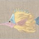 This coastal scene features textured, broad brushstrokes in shades of green and blue, that forms