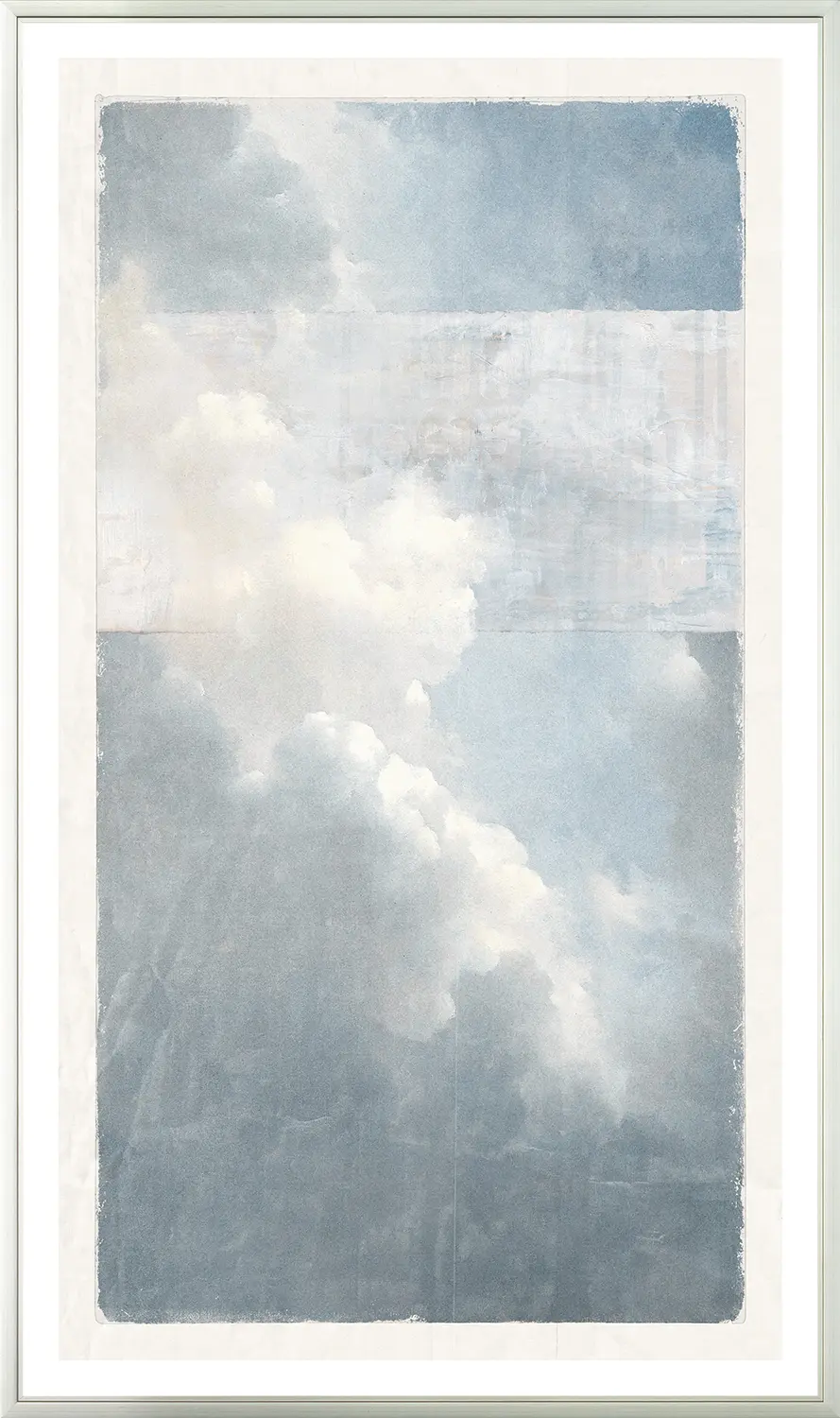 Who doesn’t love skywatching? This series of four vertical sky montages offer a contemporary take on the popular pastime guaranteed to lower your shoulder tension. Framed in a soft champagne silver gilded frame with white inset.