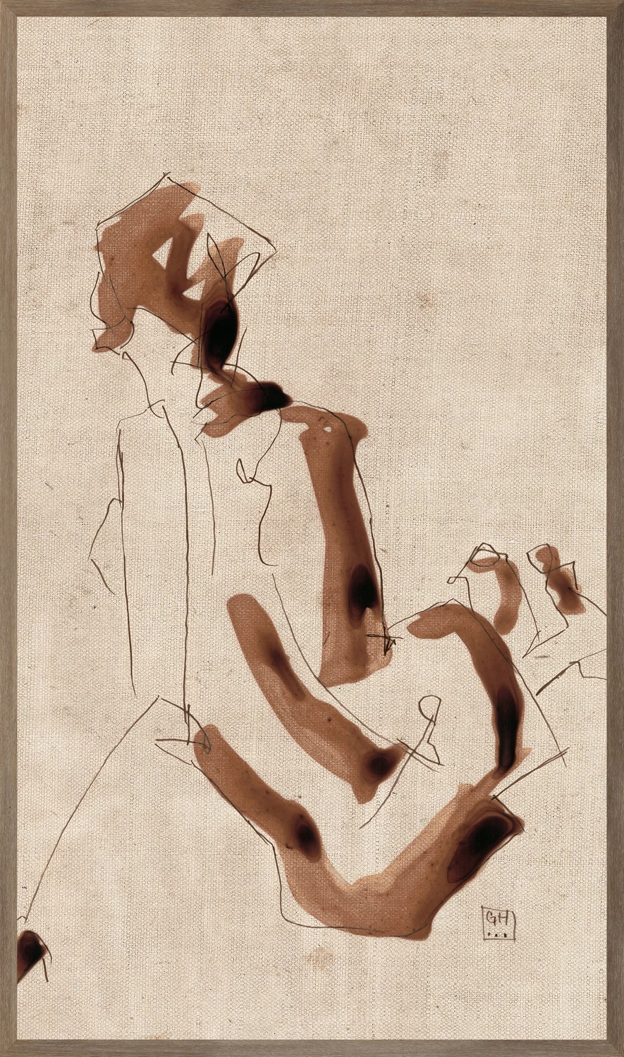 Various life drawings from our studio exploring the human figure in shades of umber and washes of ink.