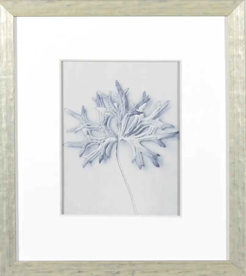 Strikingly modern and inherently beautiful, Karl Blossfeldt’s photographs of plants, flowers and seed heads are as appealing today, as they were when they were first introduced to the public in his two landmark books in Germany in 1932. Blossfeldt specialised in macrophotography to enlarge his plant specimens and even designed a camera for this purpose. Each of these intriguing photos is set in a finely mottled silver frame with a raised matt.