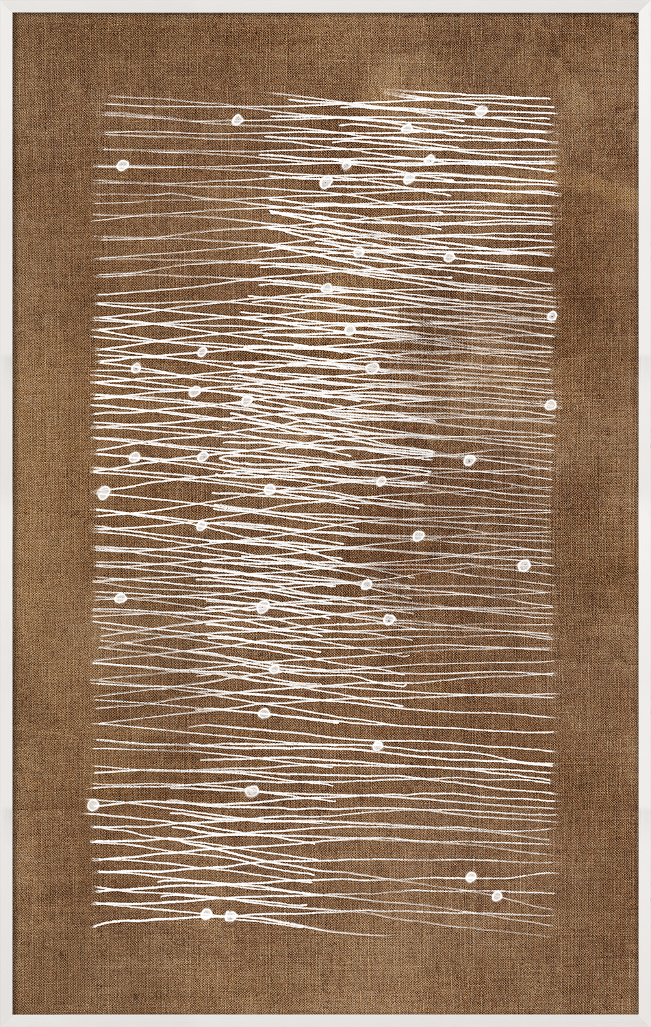 This impactful series on a linen ground has a great mid-century vibe.
