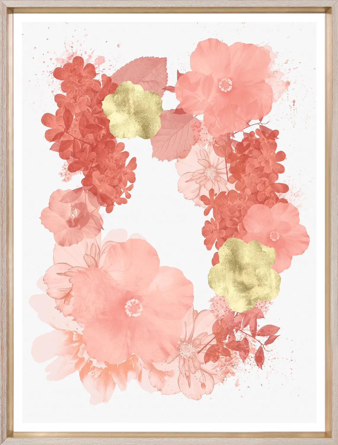 Soft and feminine, these overlays of translucent blooms are set off with golden silhouettes of hand applied gild. Rich coral tones brighten and warm these beautiful and timeless pieces.