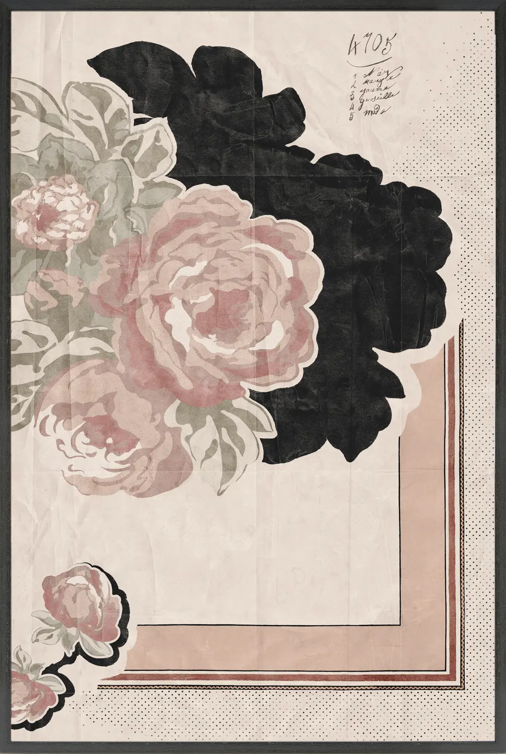 These fine vintage, French wallpaper designs are wonderfully graphic in their black and blush tones. The creases and writing suggest an authentic work in progress.