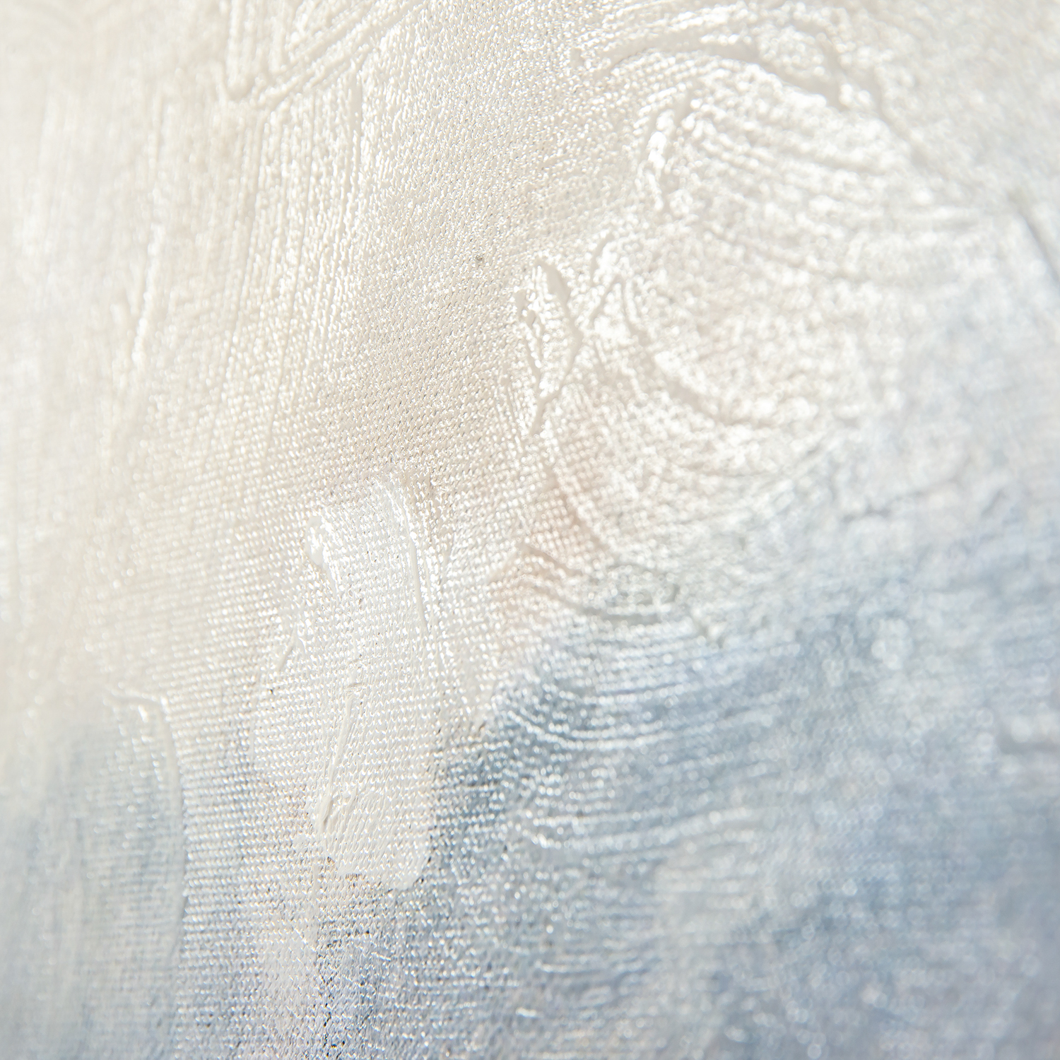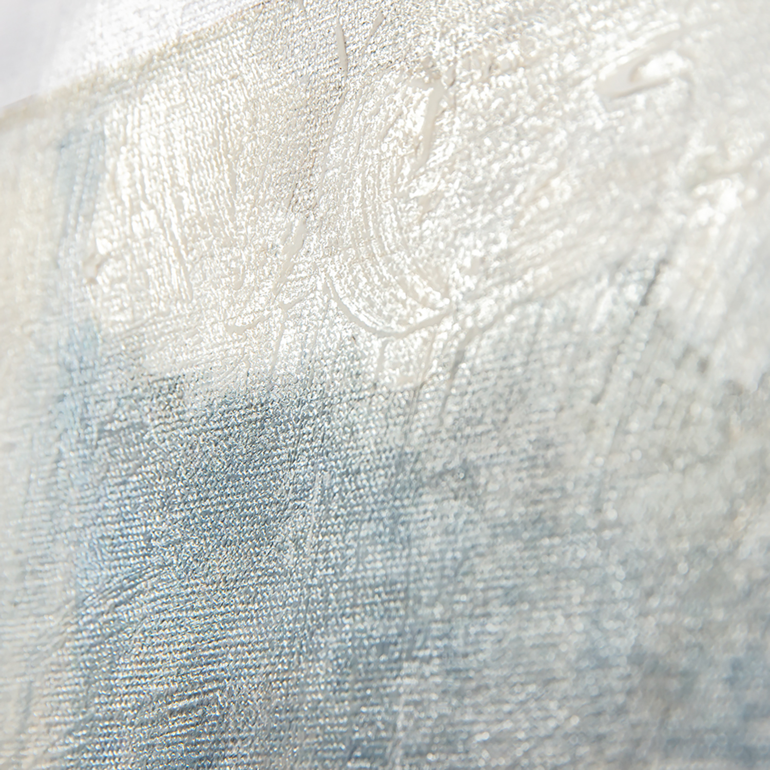 These dreamy abstracts evoke hazy landscape views with their loose brushstrokes and soft palette. The canvas print is edged by a linen liner and surrounded by a wide white matte with a warm, neutral, striated frame to finish off the look. Hand applied paint adds texture and movement.