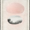 An interesting traditional landscape painting superimposed with floating orbs. Each is softly textured and set in a weathered grey angled frame.