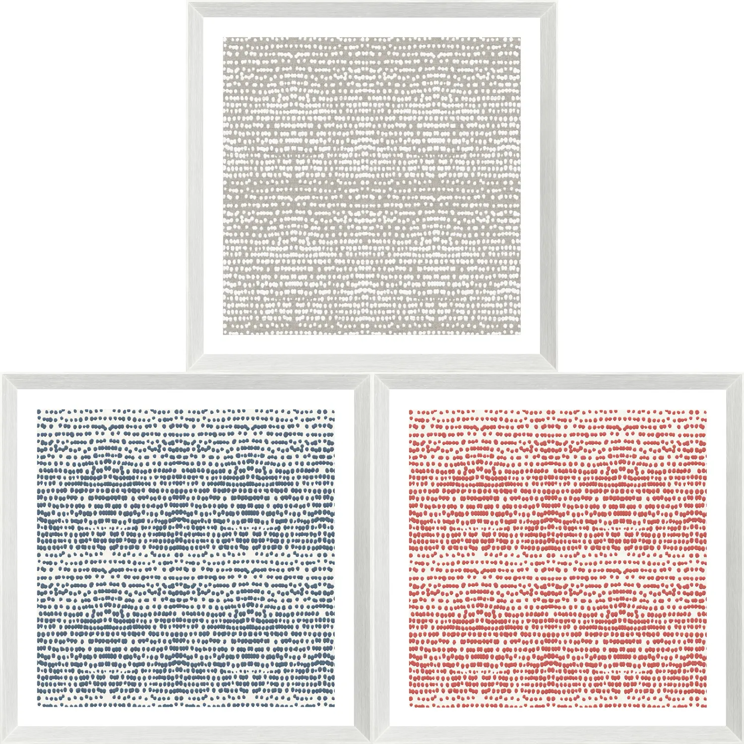 A dynamic sampling of French black and white fabric samples offers pattern within pattern. Arrange within a grid or hang individually for a contemporary vibe.