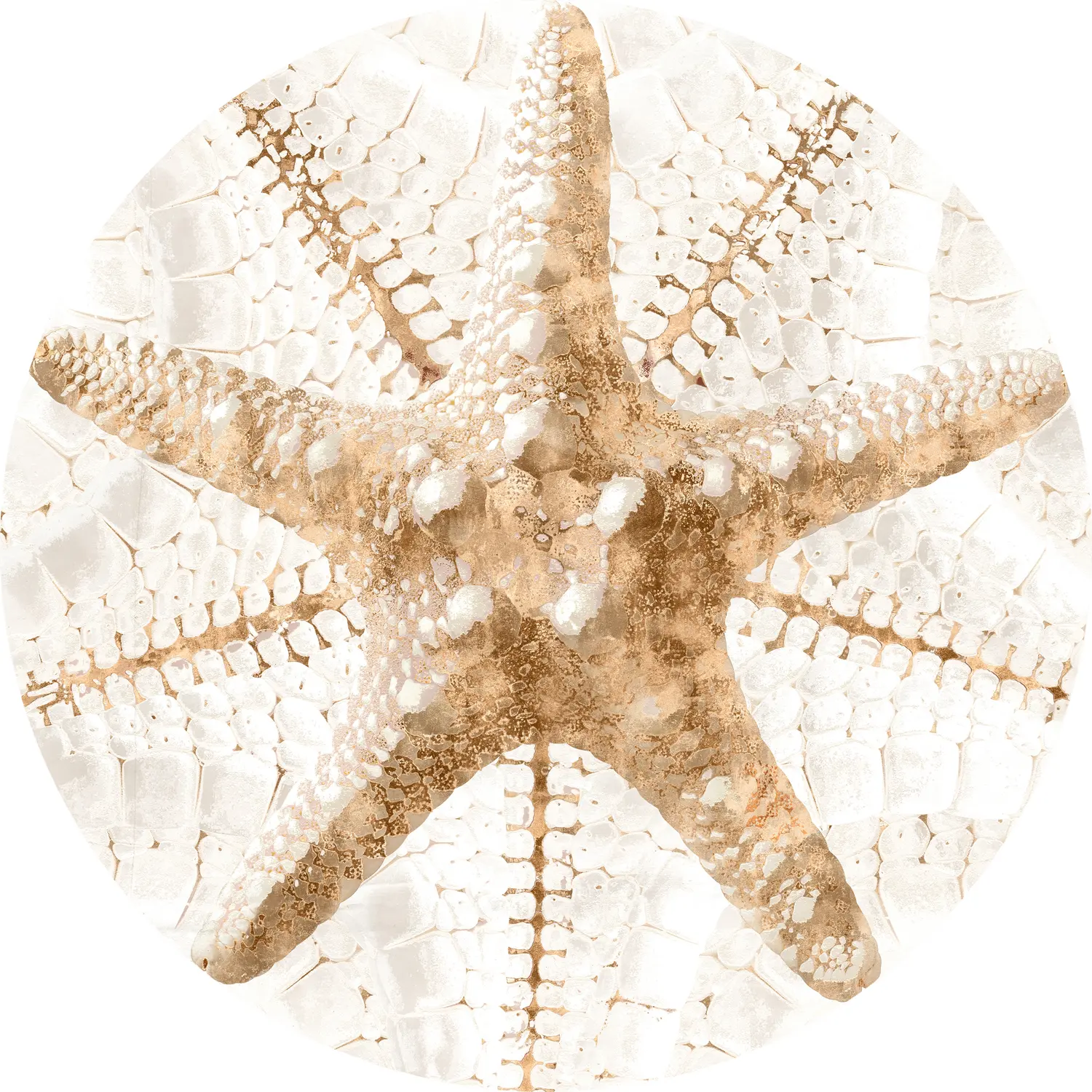 A different take on Coastal is had in these gold and blush toned shells. They will mesmerize as they float along your walls in raised acrylic, or maybe more traditionally framed, in delicately white washed and textured frames with round-cut mattes.