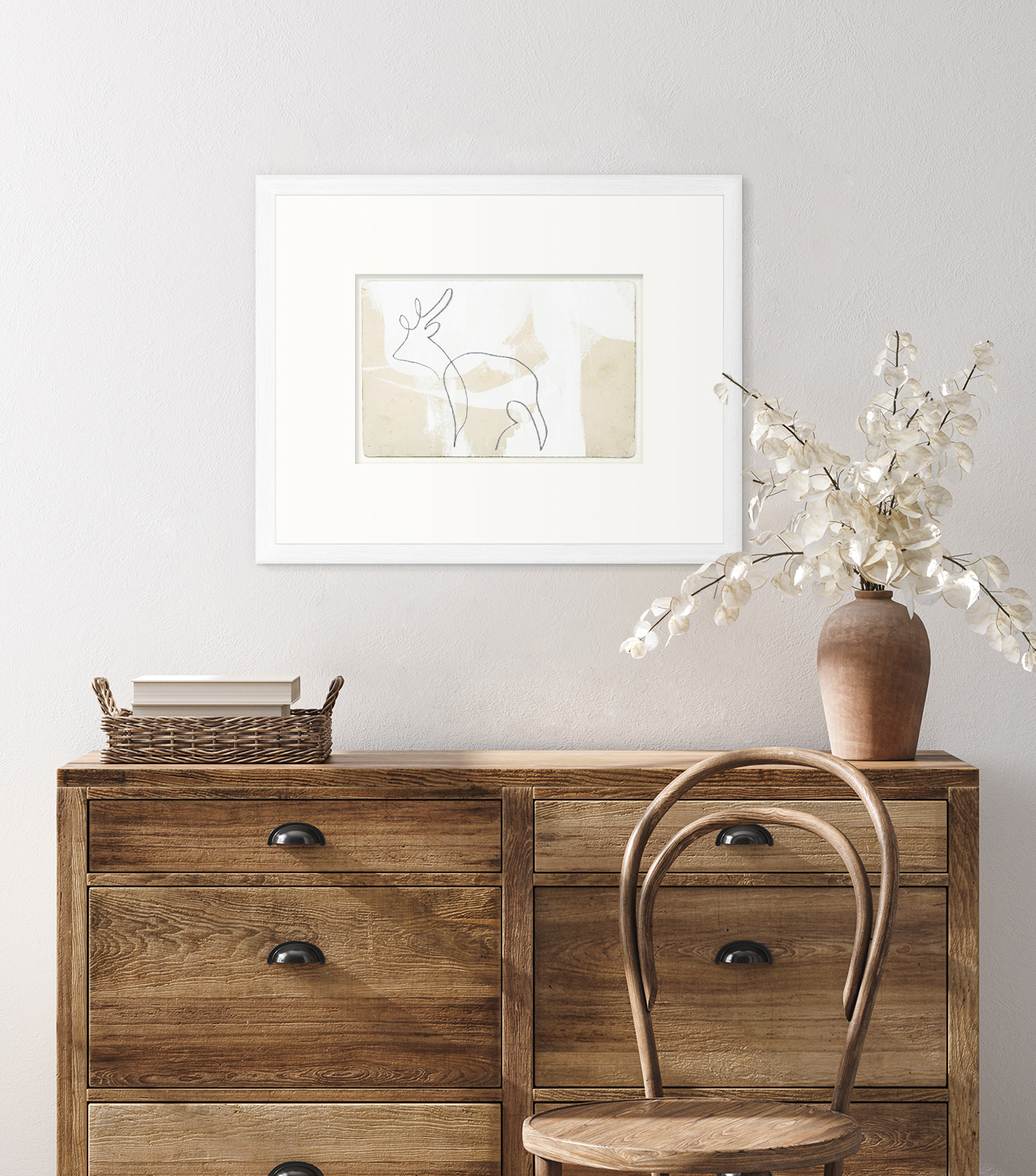 Each created with just One Line, these animals are stunning yet simple. With great use of neutral and warm tones, beautifully matted and framed they would be lovely as stand-alone pieces or in a collection.