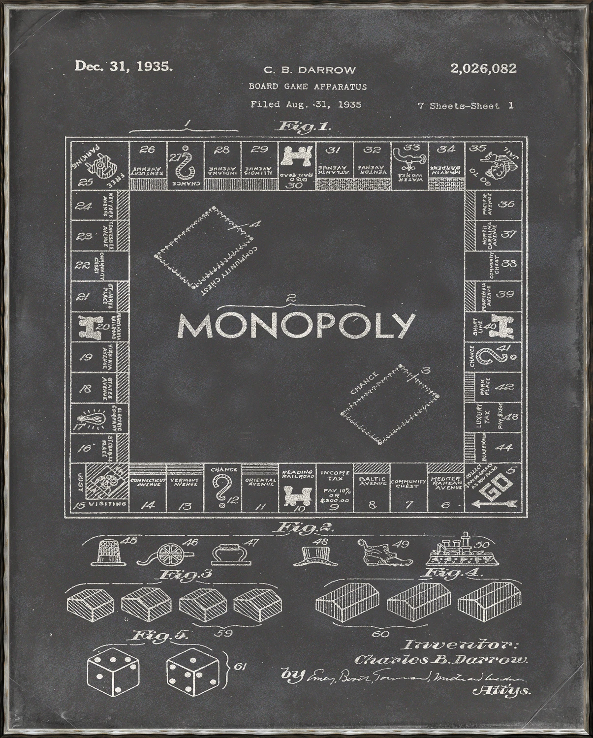 Our best selling, vintage patents include a 1896 saddle, monopoly game, skis and ski boots, skates, drafting compass, harley motorcycles, fender guitars, lego, slinky, bicycles, winter sports equipment and edison light bulbs. Check them out and bring on the memories.