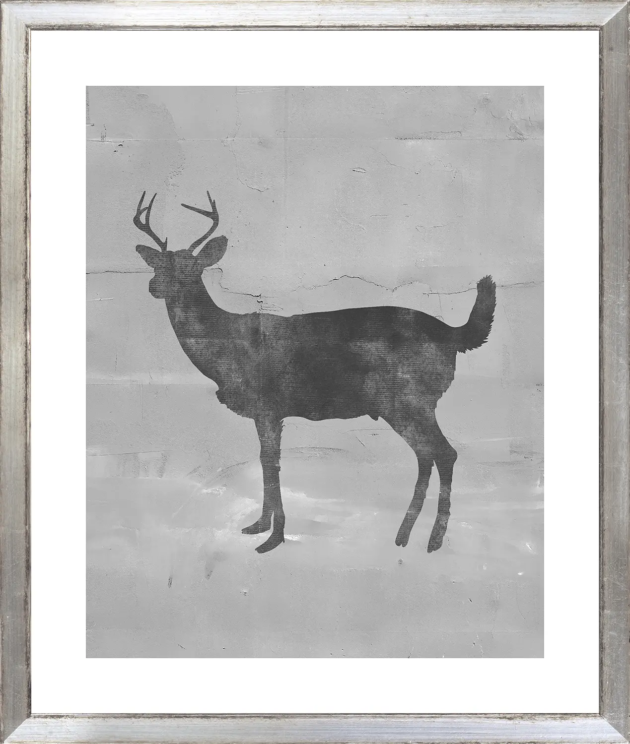 Deer silhouette in greys with a linen texture.