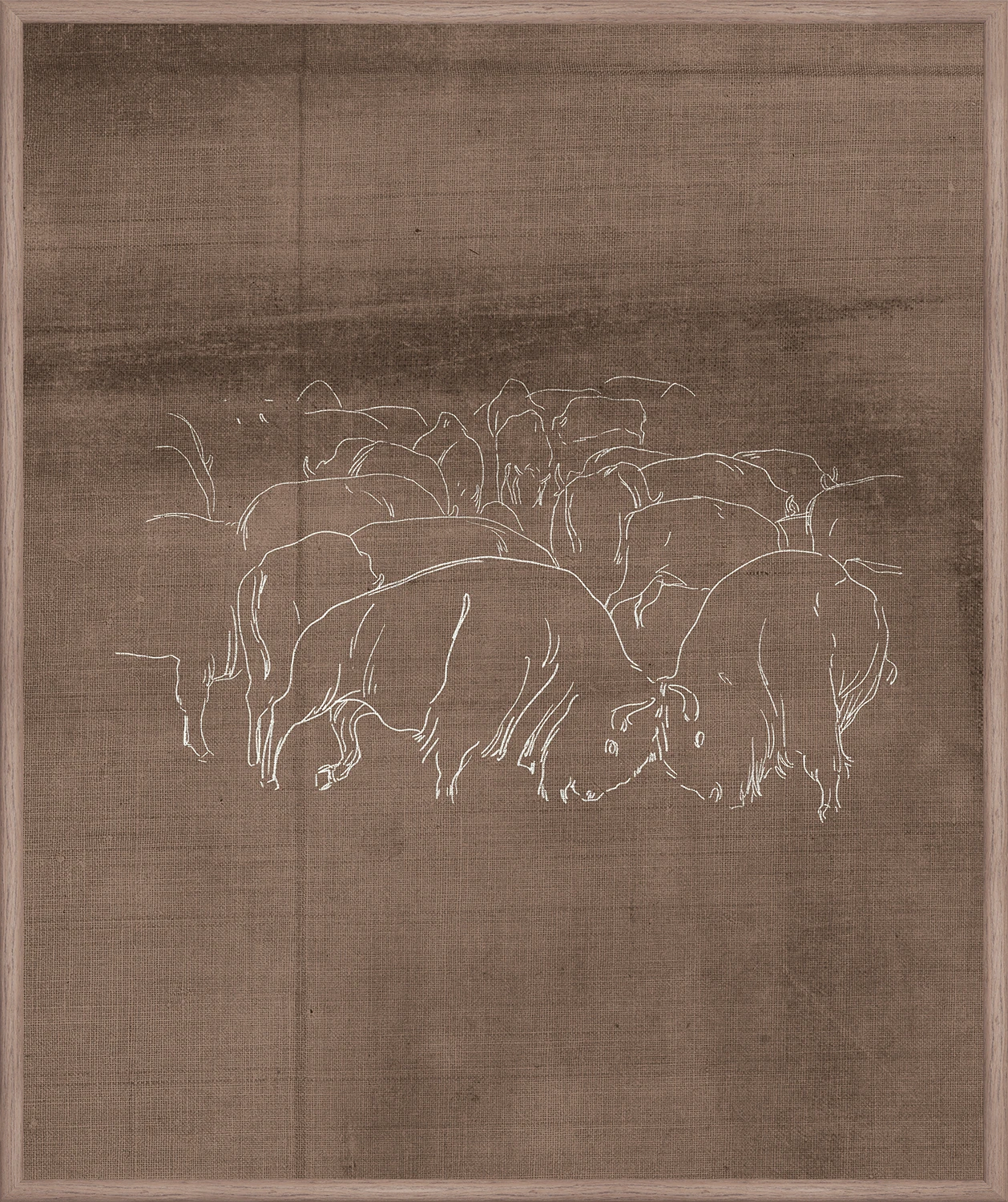 This collection showcases lively vintage sketches of bison, donkeys and mustangs on vintage linen. Available in 2 different colour pathways, natural and chocolate.