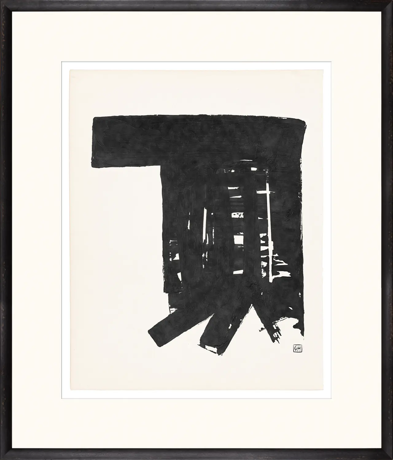 A series of bold black shapes with a mid-century style. The beauty of these pieces extends deep into the details in the black areas. There is a wealth of interest in the subtle tonal range and complex texture.