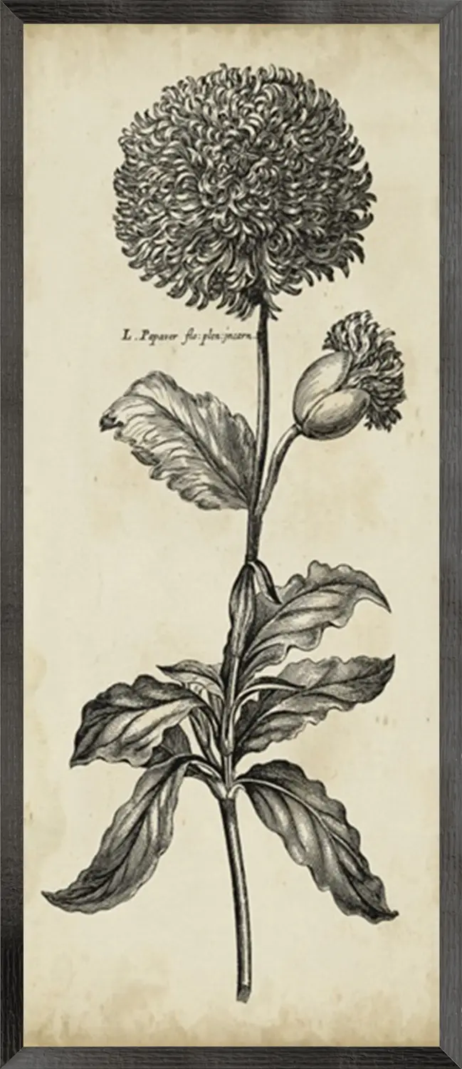 A classic botanical foil bloom on a crisp white ground against white matte is set off by gold gild frame. A real stunner.