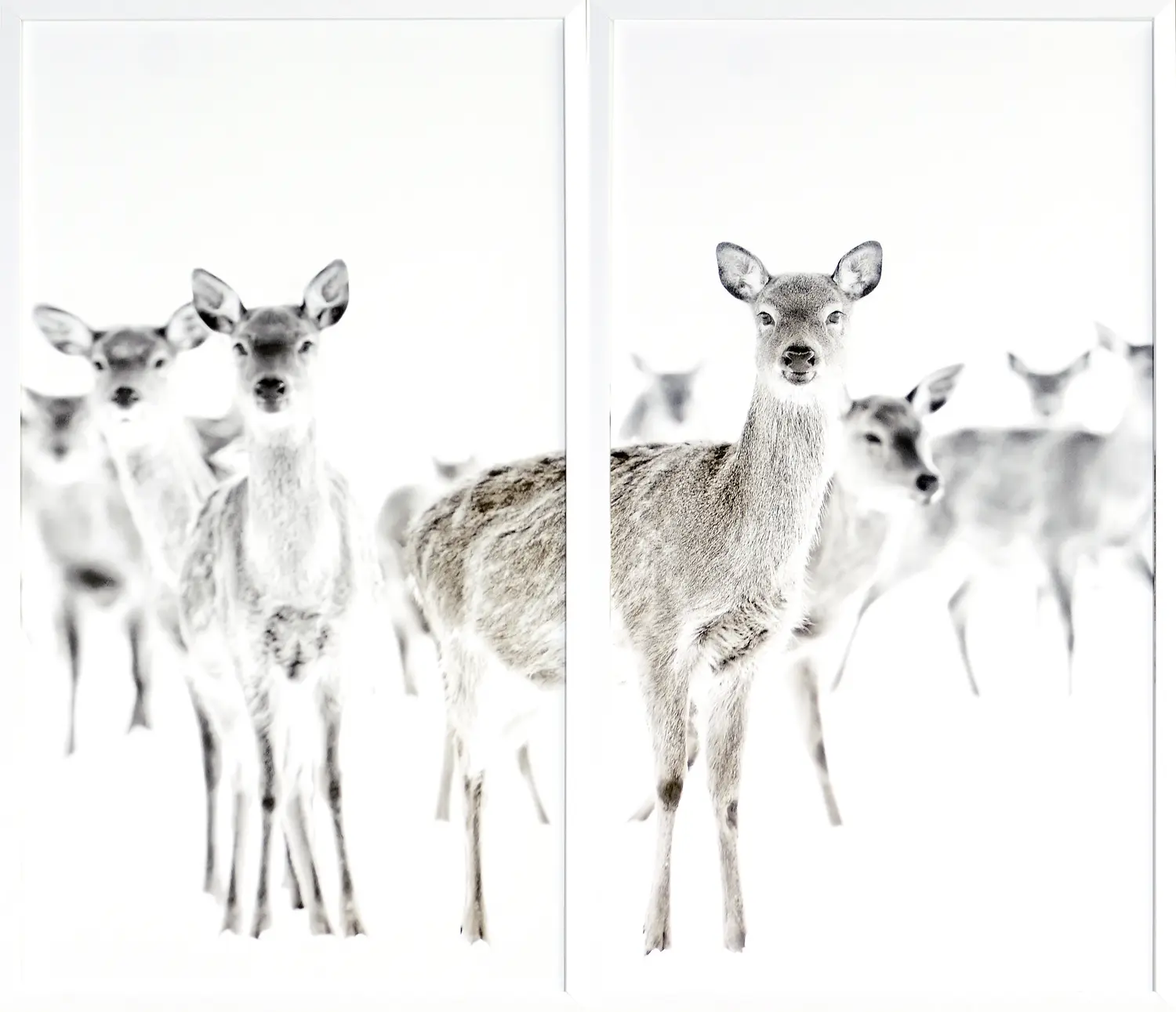 Hush. All is quiet in this gentle image of a flock of deer with heads and ears on full alert. A stunning piece that will set the tone for a calm and peaceful environment. Right on cue for the modern farmhouse trend.