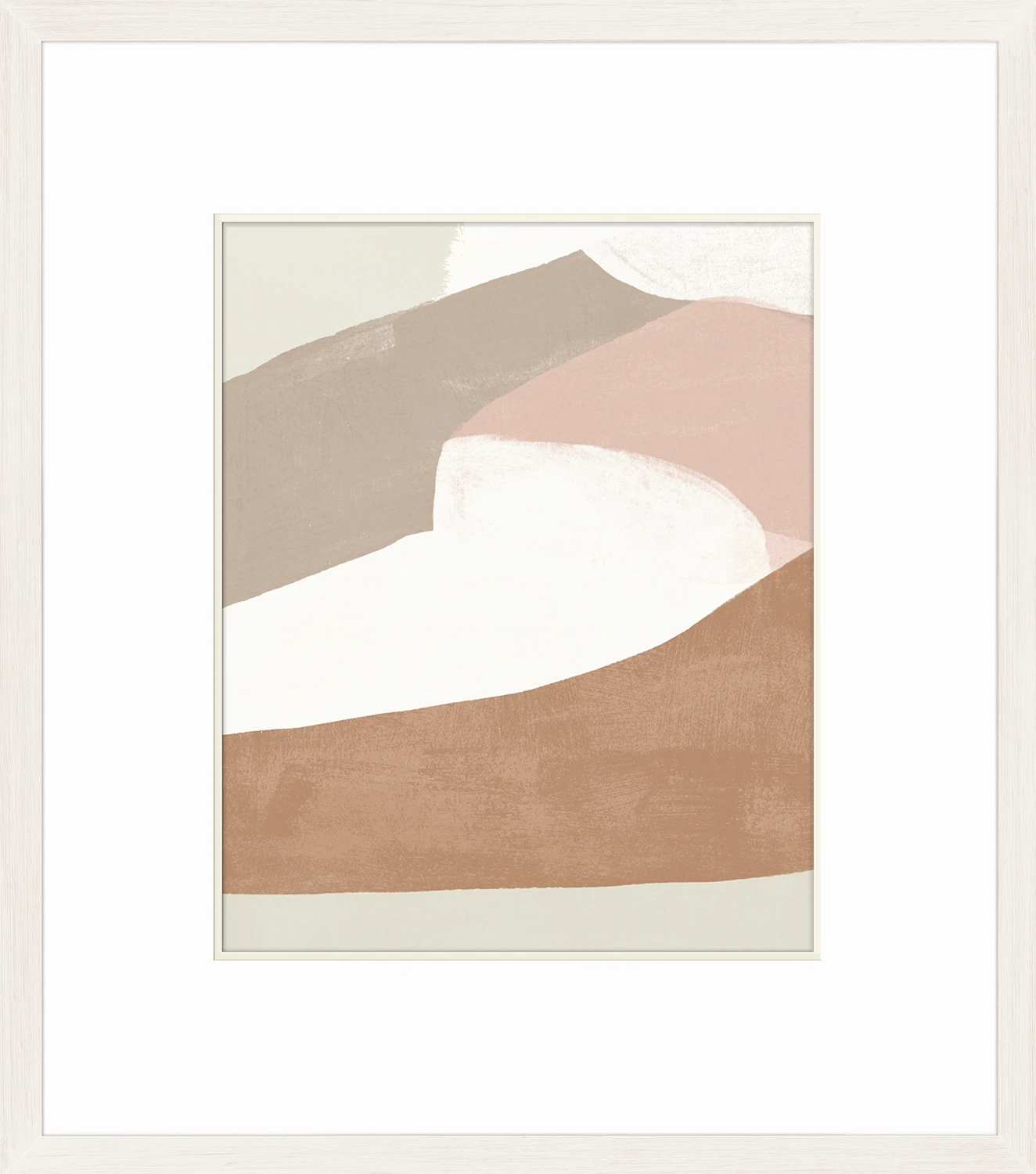 Shape is the hanger upon which Vess hangs her melody of harmonious colour. Blush, cream, gray and putty play off each other in each delightful configuration. More the merrier with this group of eight. Each is complimented by double matte and clean white wood frame.
