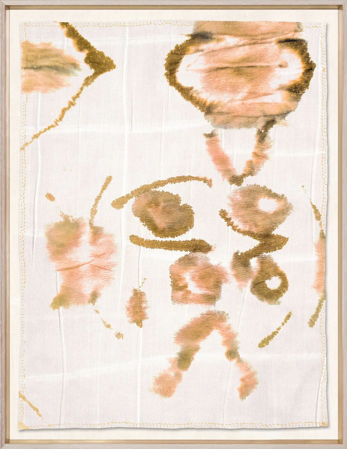 Boho tribal fabrics in pink and gold tones.