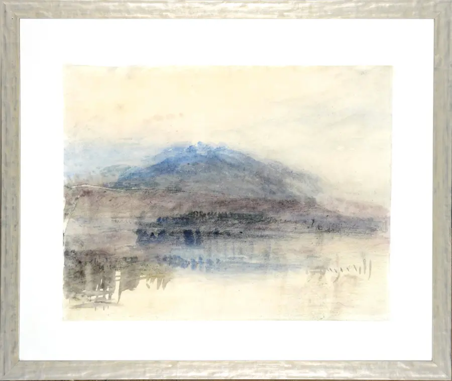 William Turner was an English romanticist painter who is credited with being a precursor to the French Impressionist movement. His broadly applied atmospheric washes of paint earned him the title of ‘the painter of light’. This series was inspired by the many moods of the English atmosphere. Set in a fine mottled silver frame.