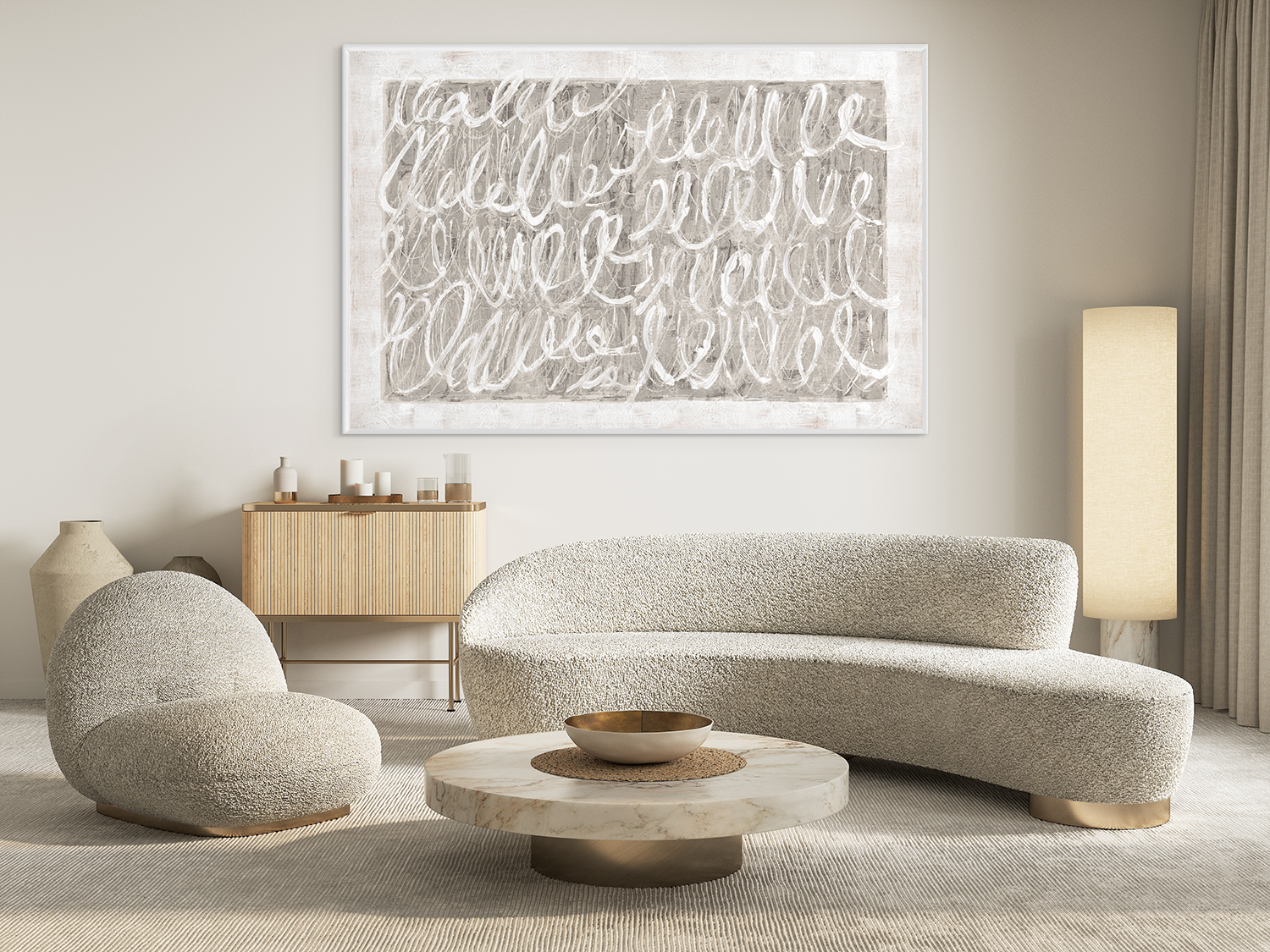 Cy Twombly, inspired the idea of process abstraction with his graffiti-like style. For him it was about the journey, not the destination. In Gayle Harismowich’s version of the American master’s work, free style, swirling scribbles play across either neutral or ‘Classic blue’ grounds.