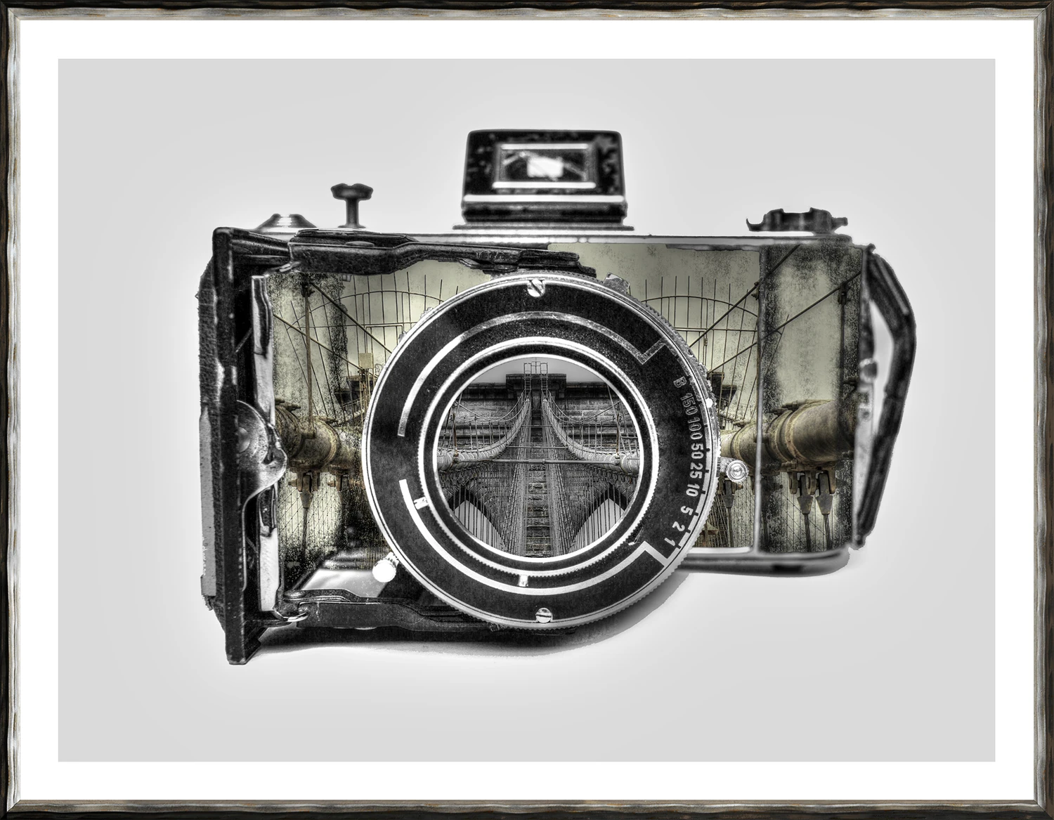 Truly unique vintage camera photographs draw you in for a closer look. Classic architectural photographs are overlayed for a stunning multi-dimensional look.